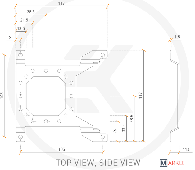 Кронштейн резервуара для насоса EK-Loop UNI - 120 мм - это монтажный адаптер для установки насосов EK D5, DDC, SPC и VTX и комбинированных блоков насос-резервуар на любую схему отверстий для крепления 120-мм вентилятора (расстояние между отверстиями 105 мм). Кроме того, его можно использовать с держателем EK-RES X3 60 мм (2 шт.) Для крепления любого резервуара или комбинации насос-резервуар с трубкой диаметром 60 мм.Изготовлен из изогнутой под давлением окрашенной стали толщиной 1,5 мм. Высота кронштейна 11,5 мм.Совместимость:- Вертикально: EK-Quantum Kinetic TBE D5 series - Вертикально: EK-XRES Revo D5 series - Вертикально: EK-XRES X3 series - Горизонтально: EK-XTOP DDC series - Горизонтально: EK-XRES SPC Classic series- Горизонтально: EK-Quantum Kinetic TBE DDC series- Горизонтально: EK-Quantum Kinetic TBE VTX series - Горизонтально и вертикально: EK-XTOP Revo D5 seriesКомплектация:- EK-Loop UNI Pump Reservoir Bracket - 120mm- 5x polyamide washer M4 0.8mm- 5x screws M4x6 DIN7984- 5x nut M4- Allen key 2.5mm