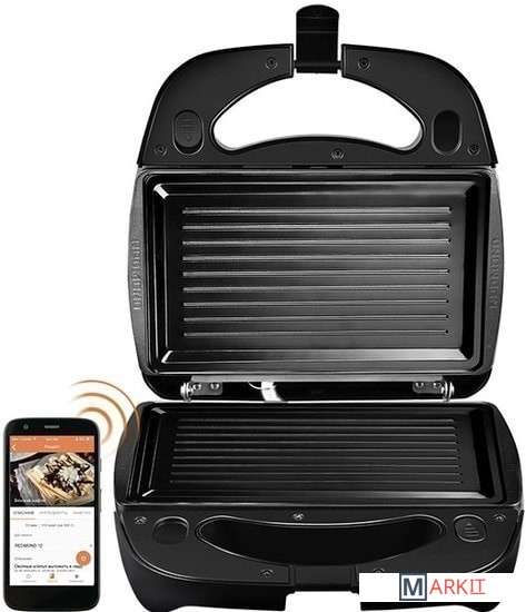 Умный Мультипекарь REDMOND SkyBaker RMB-M657/1S – смарт устройство для создания выпечки на любой вкус и блюд на гриле через приложение Ready for Sky. Контролировать процесс выпекания и приготовления горячих блюд теперь можно прямо со смартфона, спокойно занимаясь другими делами.Возможности Умного Мультипекаря безграничны! Вы можете делать с его помощью вафли, крендели, пончики, фигурные пряники и печенье. SkyBaker готовит горячие закуски, овощи и мясо на гриле, а также различные блюда на завтрак, например: сырники, омлеты, горячие сэндвичи и запеканки. Достаточно сменить панели – и можно готовить новое блюдо!В комплект RMB-M657/1S входят панели для гриля RAMB-03. Но вы можете легко расширить возможности своего смарт Мультипекаря, дополнив его новыми панелями. Для этого REDMOND разработал более 40 комплектов панелей (панели для Мультипекаря серии 6). Все они снабжены антипригарным покрытием, благодаря которому выпекать и жарить можно практически без масла. Размер одной панели 250х132х9 мм.С Умным Мультипекарем выпекать может каждый. Достаточно установить на смартфоне приложение Ready for Sky.Включите Мультипекарь, и приложение подскажет, когда панели будут разогреты – вы сможете в нужный момент выложить ингредиенты или тесто в формы. Запустив приготовление, вы можете спокойно заниматься своими делами. Когда Умный Мультипекарь все приготовит, то сразу оповестит вас об этом по смартфону.Через приложение вы можете включить функцию подогрева, чтобы завершив приготовление, Умный Мультипекарь поддержал гриль-блюдо или выпечку теплой. Время установки подогрева – до 3 часов.С помощью Умного Мультипекаря можно также разогревать остывшую выпечку и блюда из холодильника, например: пиццу, пироги, чебуреки, пирожки и запеканки. Для этого предусмотрена функция разогрева.Хотите приготовить горячие сэндвичи к приходу на обед мужа с работы, но боитесь, что забудете это сделать онлайн со смартфона? Тогда заранее установите отложенный старт через приложение, и SkyBaker RMB-M657/1S сделает все по вашим настройкам точно в срок*.В приложении Ready for Sky для Умного Мультипекаря предусмотрена встроенная книга рецептов. Выбирайте рецепт и запускайте его приготовление в 1 клик! Удобная фильтрация по используемым панелям и ингредиентам позволит вам быстро найти нужный рецепт. В нем вы увидите все, что требуется: список ингредиентов, порядок приготовления, количество порций, время приготовления и калорийность блюда. Готовя по встроенной книге, вы можете делать свои заметки в каждом рецепте и для максимально быстрого поиска в будущем переносить любимые рецепты в «Избранное».В RMB-M657/1S предусмотрен специальный лоток, в который при выпечке и жарке стекают все излишки жира. На приготовленных продуктах не остается масла, а это дополнительное преимущество для диетического питания. Двойной замок на корпусе SkyBaker позволяет регулировать прижатие панелей в зависимости от формы и толщины выпечки. Благодаря этому RMB-M657/1S подходит как для приготовления высоких сэндвичей и пирогов, так и для выпечки тонких вафель и печенья.Умный Мультипекарь отличается компактностью и удобным хранением. Его можно поставить вертикально на специальные ножки. В таком положении RMB-M657/1S займет минимум места на кухне.*На отложном старте старайтесь использовать более сухие ингредиенты, которые не дают сок.