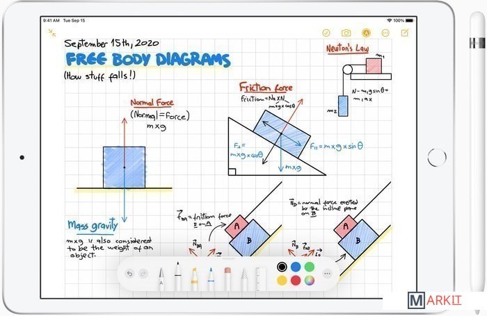 Восьмое поколение iPad 10.2" получило процессор A12. Модель поддерживает Apple Pencil и обрабатывает до пяти миллиардов операций в секунду.
