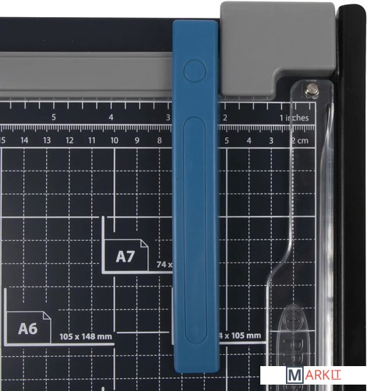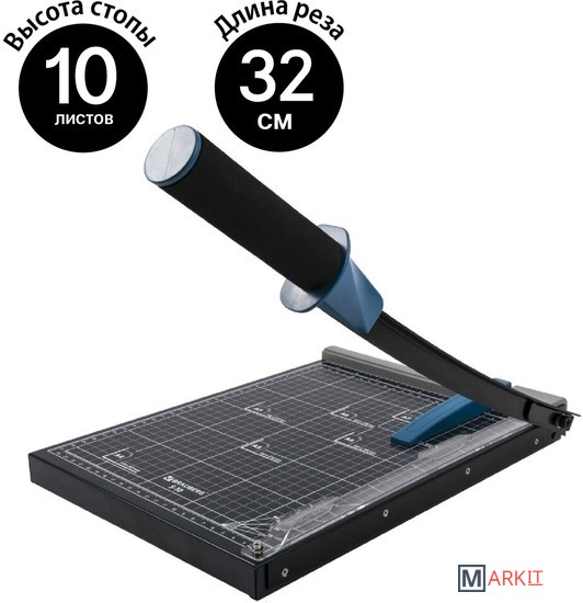 Сабельный резак для бумаги BRAUBERG «KATANA» подходит для домашнего и офисного применения. Позволяет одновременно разрезать до 10 бумажных листов формата А4.Оснащен безопасным лезвием, регулируемым упором и ручным прижимом для бумаг. Рукоятка имеет мягкое покрытие, которое также препятствует соскальзыванию руки. Прочное металлическое основание. Удобная разметка рабочей поверхности и регулируемый упор позволяют точно наметить линию реза. Длина реза составляет 320 мм. Также имеются уголки для форматов А4, А5, А6, А7. Резиновые ножки предотвращают скольжение по рабочей поверхности во время эксплуатации.